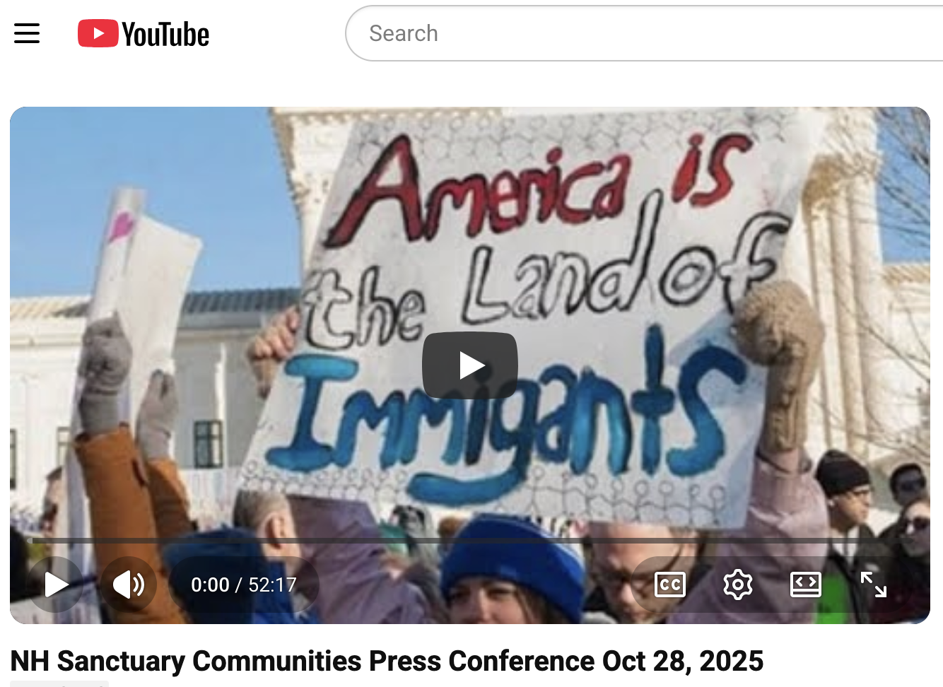 CONCORD, NH (October 28, 2025) At a Concord news conference today, New Hampshire residents announced the formation of Sanctuary Communities that cover its cities and towns. Multiple groups have joined together to protect their communities from federal agents who are detaining legal immigrants and American citizens alike.